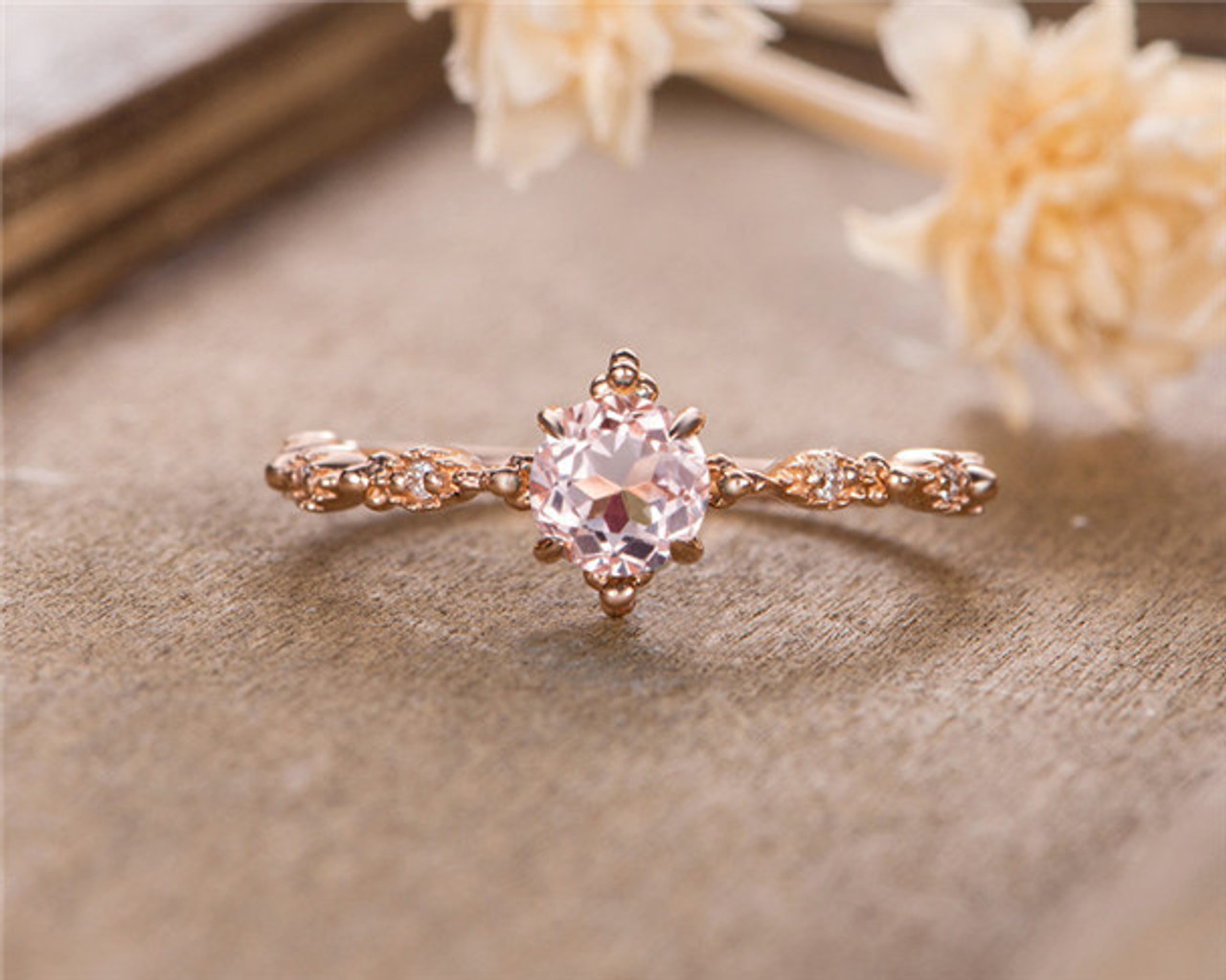 Morganite Engagement Ring Rose Gold Art Deco Vintage Diamond Unique Promise Ring Bridal Ring