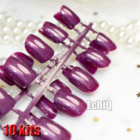 Glitter False Nails Short Square Pure Color Purple Pink Acrylic Nails Wholesale 10 Kits Simply Designed Tips 240pcs Totally