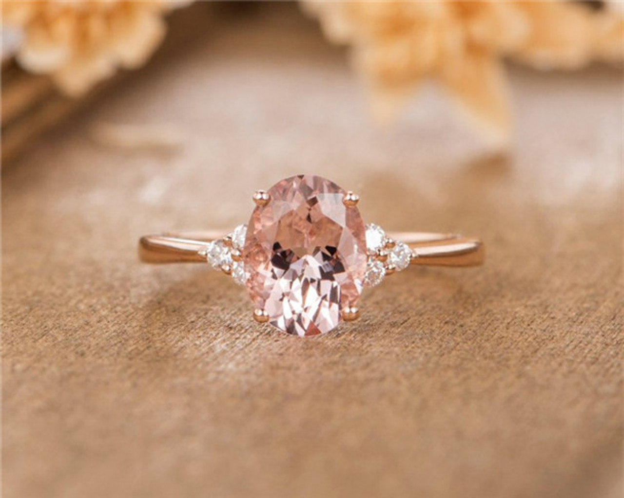 Rose Gold Bridal Ring Oval Cut Morganite Engagement Ring Simple Women Anniversary Wedding