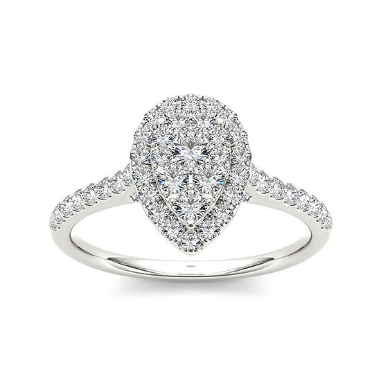 3 4 Ct T W Diamond 10k White Gold Pear Shaped Engagement Ring