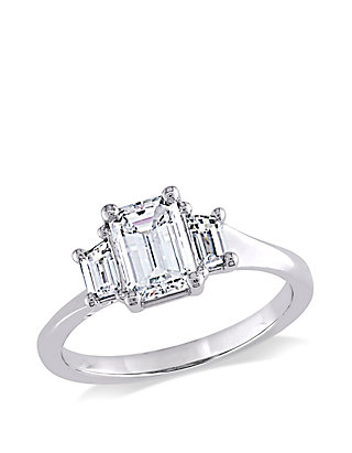 1 1 6 Ct T W Emerald And Trapezoid Cut Diamond 3 Stone Engagement Ring In 14k White Gold