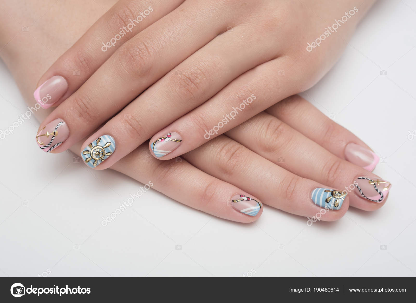 Female Hand With Turquoise Nail Design And Sea Stones Clean