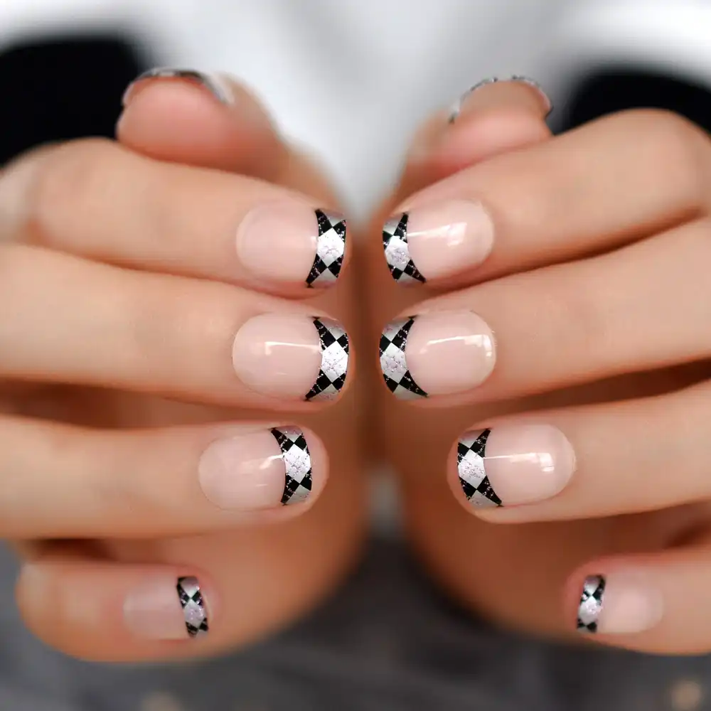 Glitter French Nails Square Nude Short Nails Nature Silver Pattern Nails Modern Uv Gel Acrylic Tips