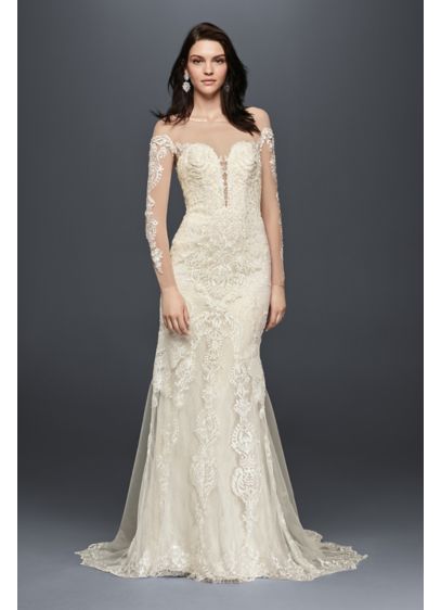 Petite Long Sleeve Illusion Lace Wedding Dress David S Bridal