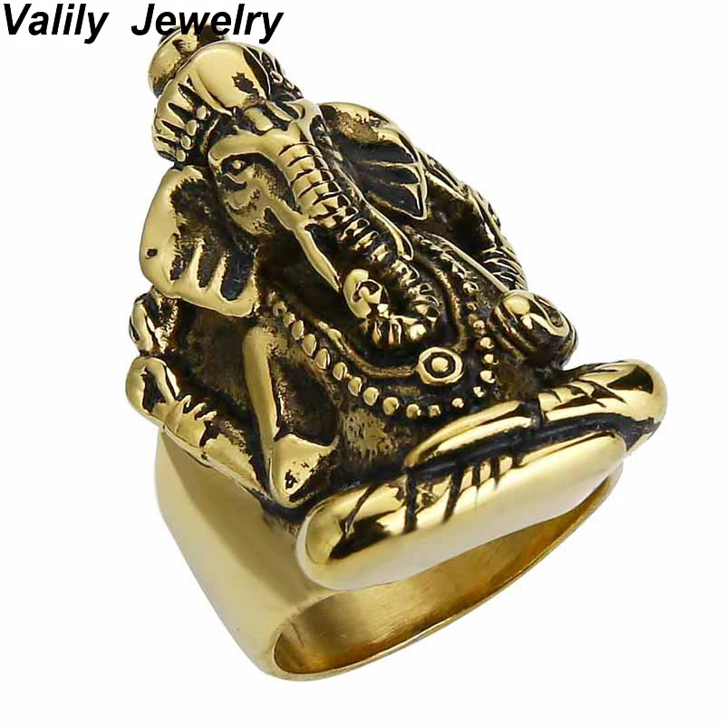 Us 4 01 27 Off Edglifu Men Ring Thailand Buddha Elephant Thai Pikanet Ganesha Ganesh Rings Stainless Steel Golden Cool Jewelry Rings Men In Rings