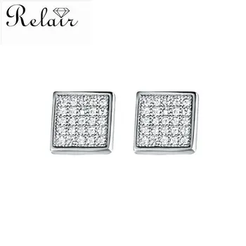Silver Square Men Earrings Cz Micro Pave