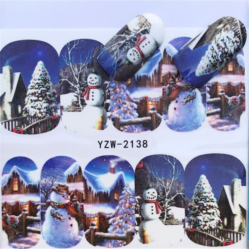 Ywk 1 Pc Winter Sticker Nails Art Water Transfer Christmas Snowflakes Gel Polish Wraps Nail Decals