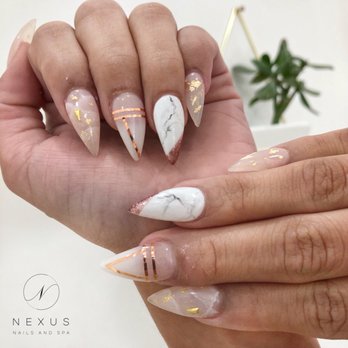 Marble Gold Leaf Rosegold Acrylic Nails Yelp
