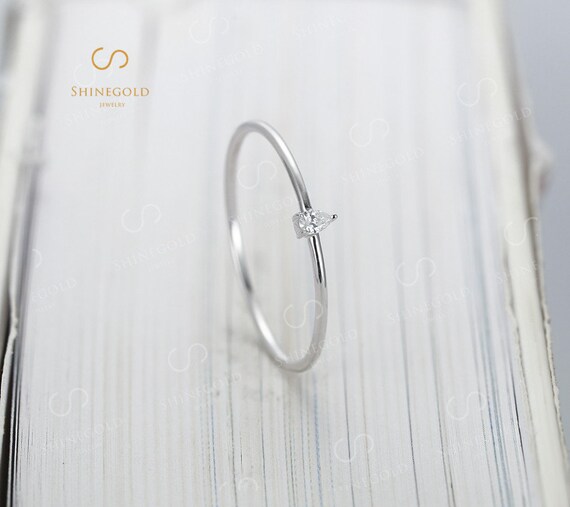Minimalist Engagement Ring White Gold Simple Pear Shaped Engagement Ring Dainty Diamond Wedding Bridal Stacking Unique