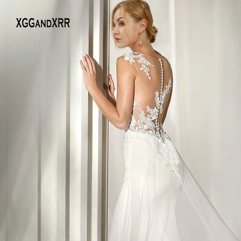 Romantic Long Mermaid Wedding Dress 2019 Elegant O Neck