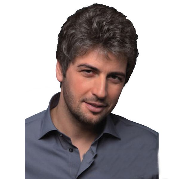 2019 Men S Hair Wigs Synthetic Middle Aged And Old People Short Curly Hair Black Gray Mixed Color Highlights Short Hair Fluffy Short Hairpiece From