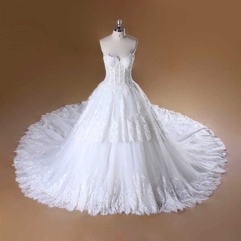 Strapless Sweetheart Corset Lace Princess Ball Wedding Gown With Chapel Train Ball Gown Lace Wedding Dress