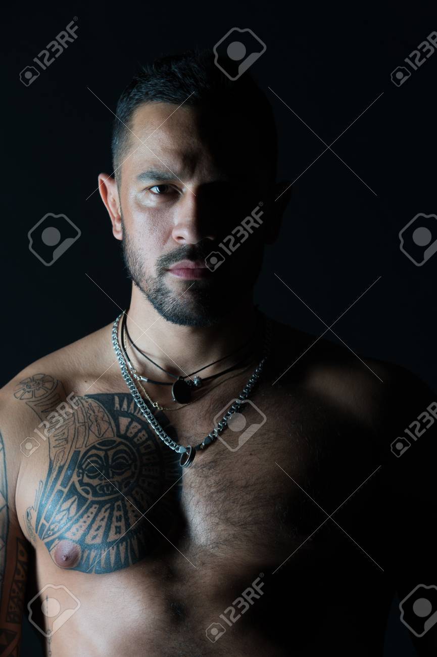 Bearded Man With Tattooed Chest Man With Sexy Muscular Torso