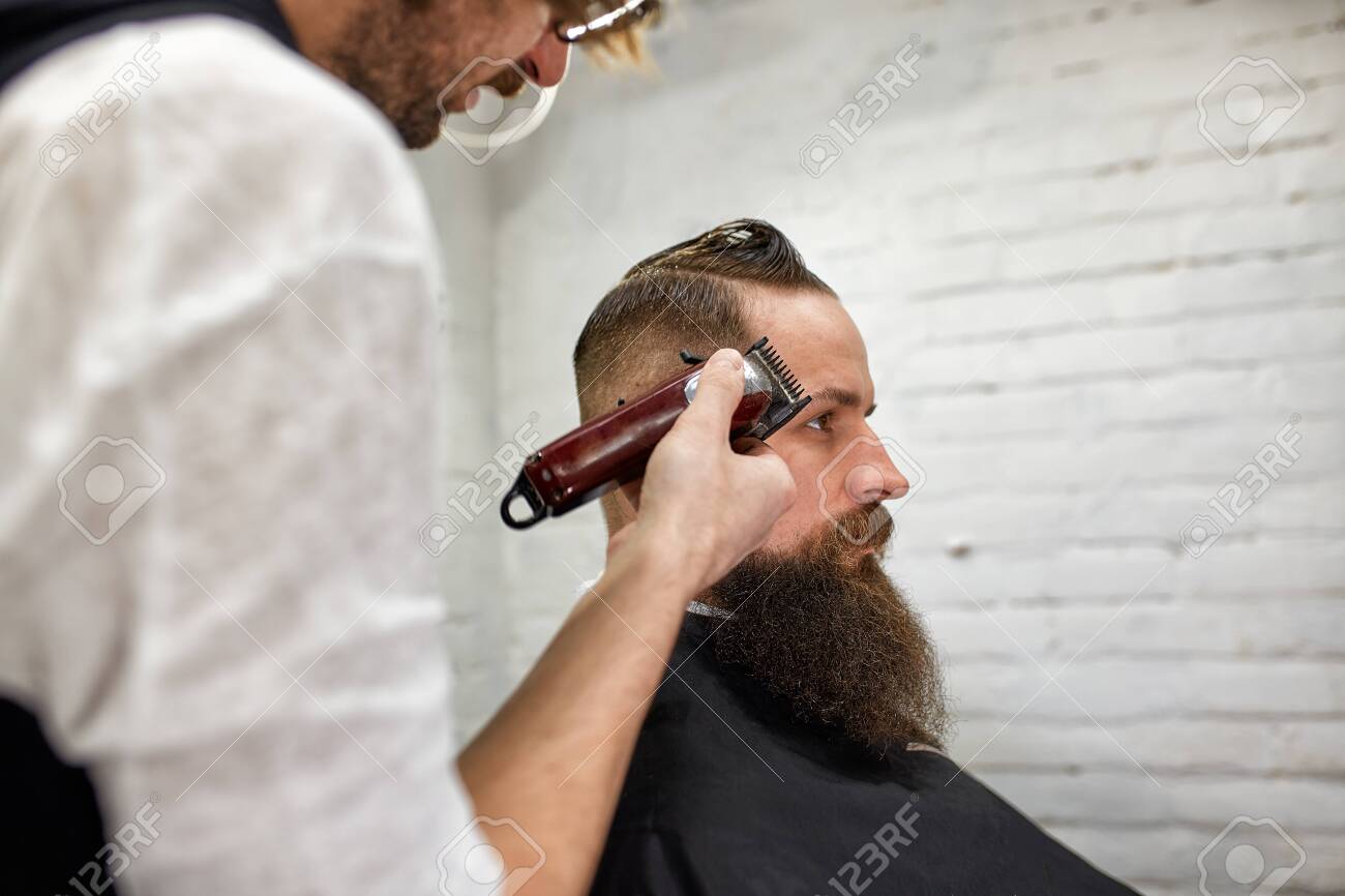 Master Barber Does Hairstyle And Styling Concept Barbershop