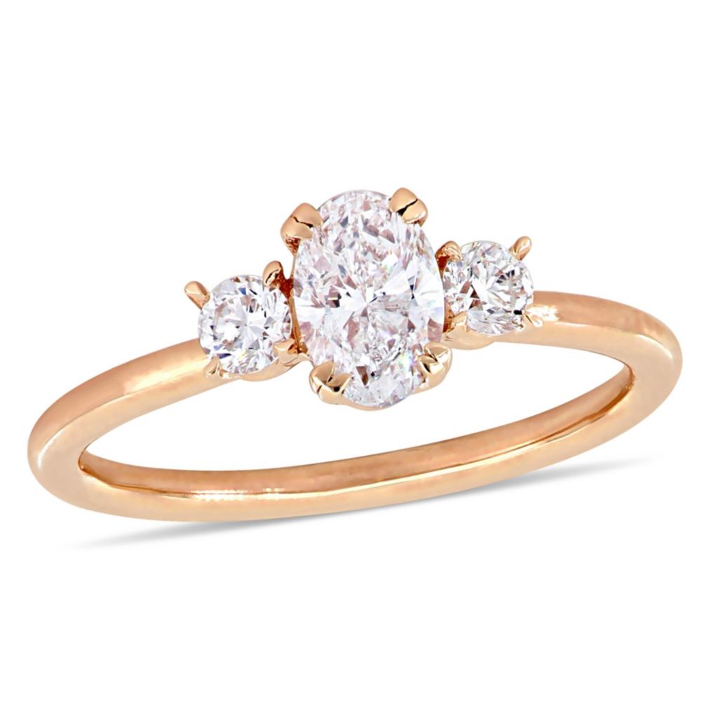 Julianna B 14k Rose Gold 0 97ctw Oval Round Cut Diamond 3 Stone Engagement Ring