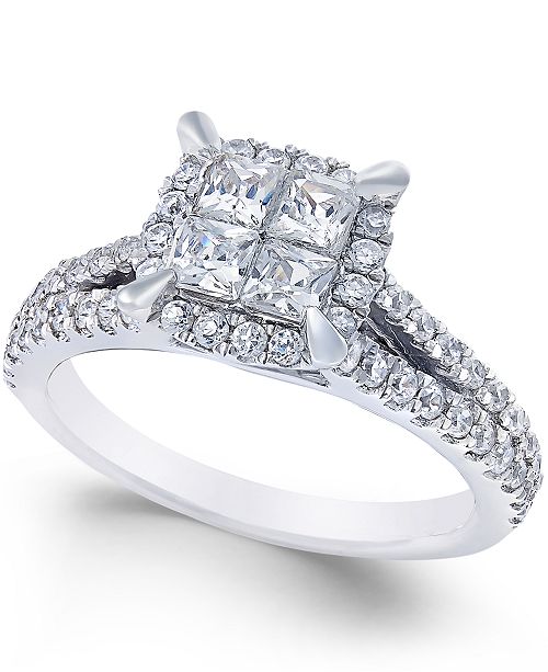 Square Quad Halo Diamond Engagement Ring 1 Ct T W In 14k White Gold