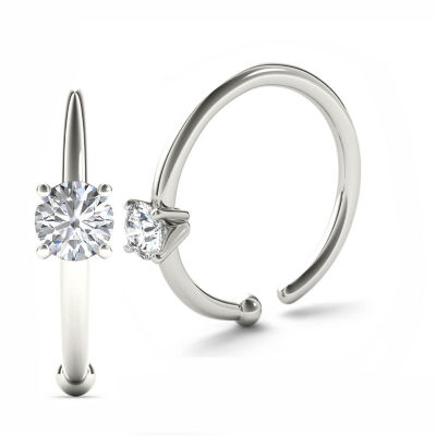 14k White Gold Diamond Accent 3mm Hoop Nose Ring