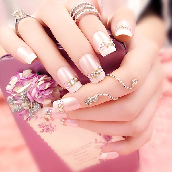 Fashion Fake Nails Glitter White Pink Mauve Square Artificial Nail Tips Fashion Art Nails 2019 French Nail Artificial Nail Christmas False Nails From