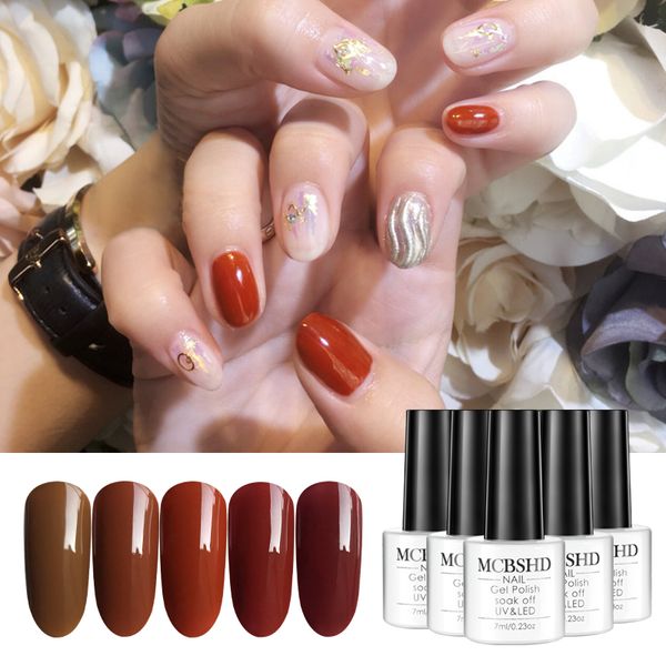 Mcbshd Gel Nail Polish Flax Brown Pure Color Varnishes Semi Vernis Permanant Polish Gel Lacquer Uv Led Soak Off Art Nail Nail Designs Nail Art From
