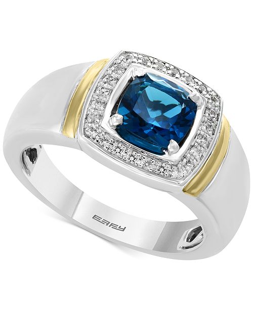 Effy Men S London Blue Topaz 1 5 8 Diamond 1 6 Ct T W Ring In Sterling Silver And 14k Gold