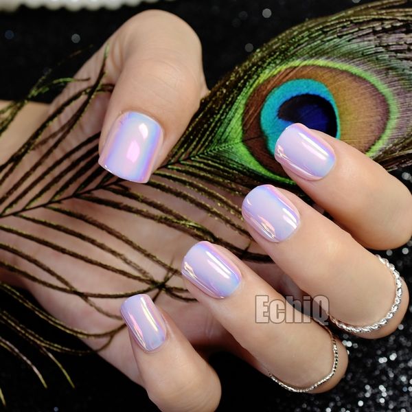 Chrome Holographic Fake Nails Light Pink Mirror Shiny False Nails Finger Full Wrap Diy Nail Tips With Glue Stiker D19010803 Acrylic Nail Designs Fake