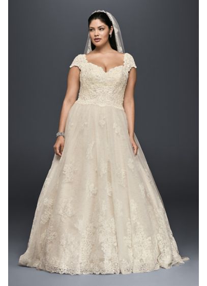 Cap Sleeve Lace Plus Size Ball Gown Wedding Dress