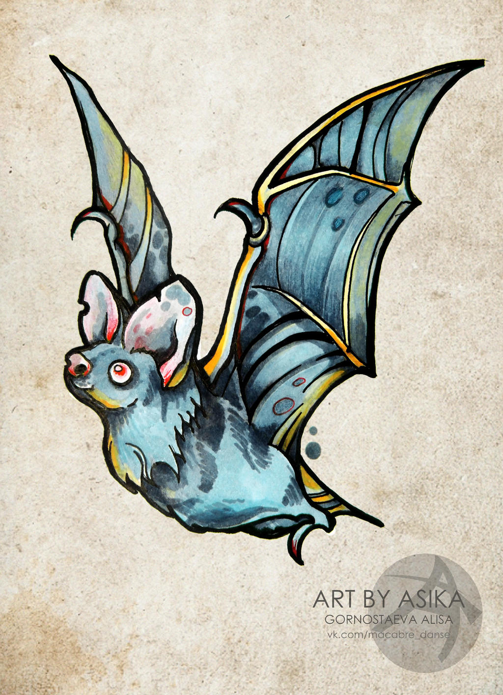 Bat New Schooll Neo Traditional Tattoo Sketch By Asikaart