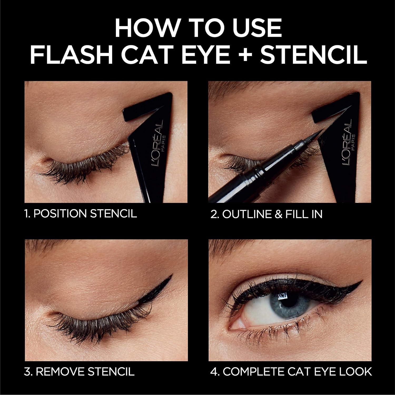L Oreal Paris Makeup Flash Cat Eye By Infallible Waterproof Liquid Eyeliner Easy To Use Brush Tip Detachable Stencil For Winged Eyeliner Precise