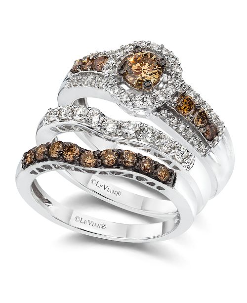 14kt White Gold His Hers Round Natural Diamond Cluster Matching Bridal Wedding Ring Band Set 1 1 2 Cttw