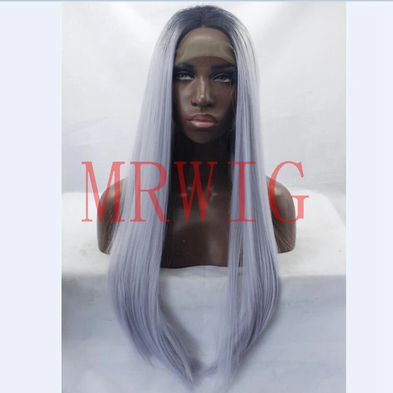 Mrwig Ombre Blue Grey Hair Color Real Hair Middle Part Wig