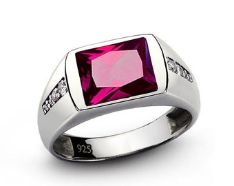 925 Sterling Silver Men Ring Handmade Jewelry Red Ruby Stone