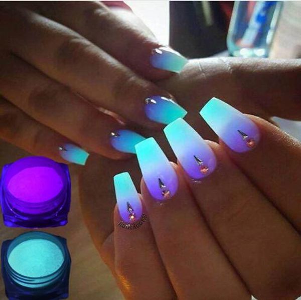 New Neon Phosphor Nail Glitter Dust Luminous Pigment Fluorescent Nail Glitters Glow In The Dark Nails Glitter Tips Acrylic Nails With Glitter From