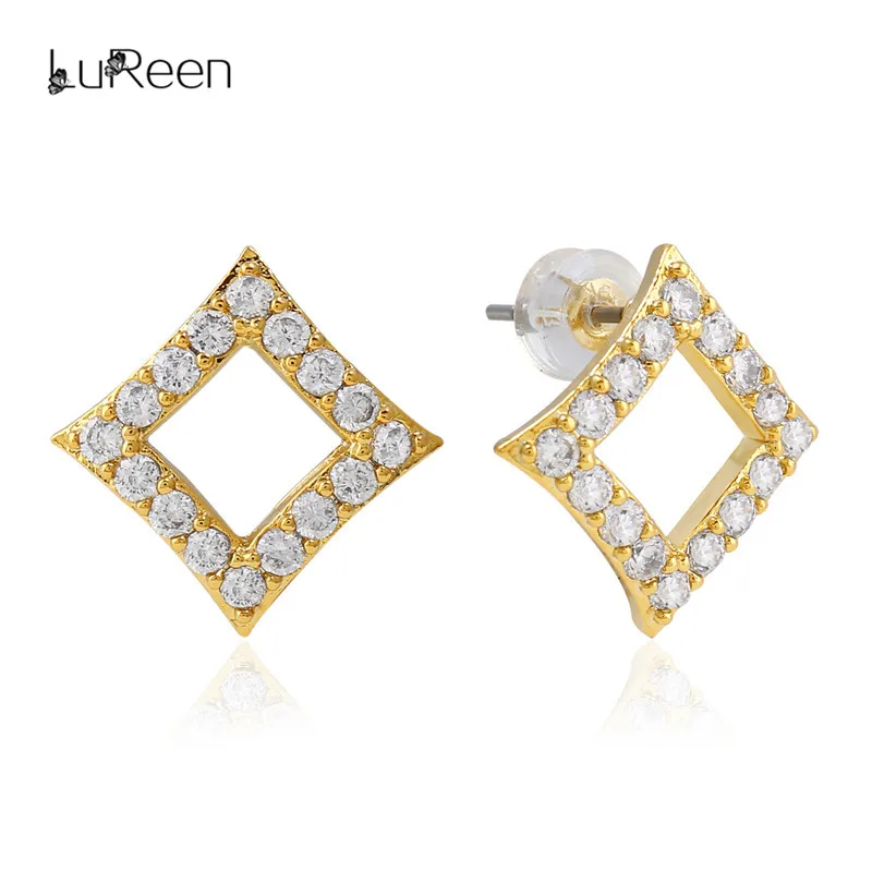 Us 4 08 10 Off Lureen Gold Stud Earrings Women Men Hollow Micro Pave Cz Square Earring Geometric Earring Fashion Jewelrys Party Wgeh1021 In Stud