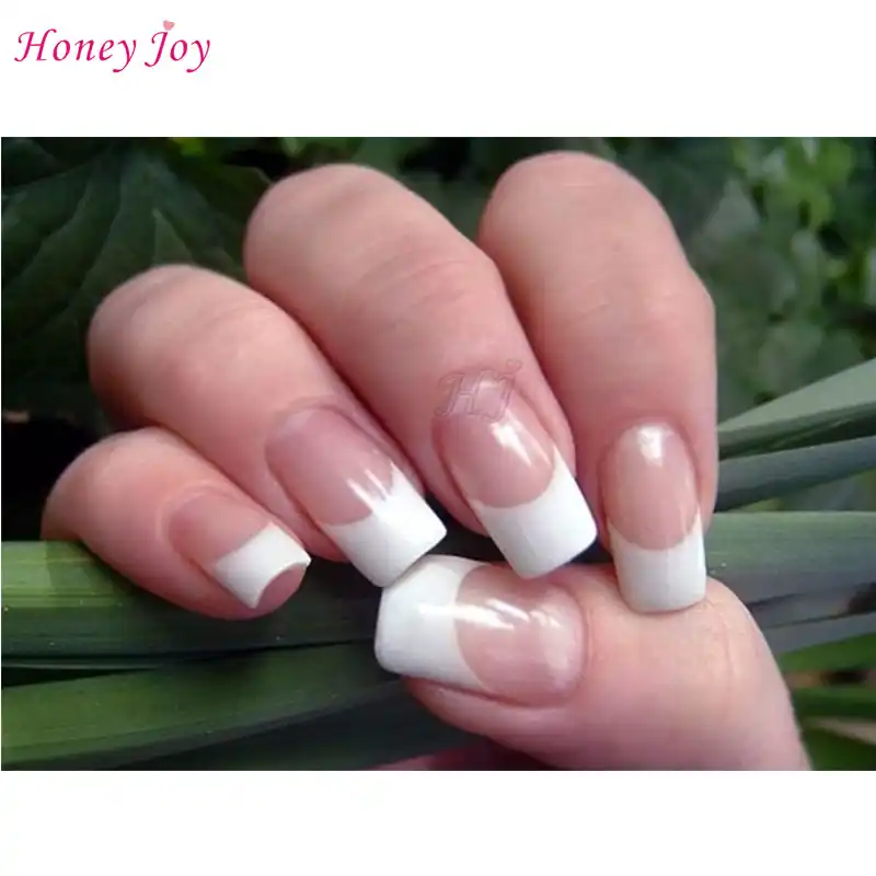 Pearl Pink White French Fake Nails Tips Acrylic Uv False