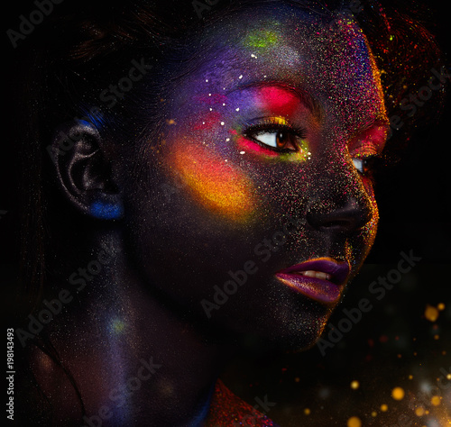 Glowing Neon Makeup With Dramatic Look In His Eyes Creative