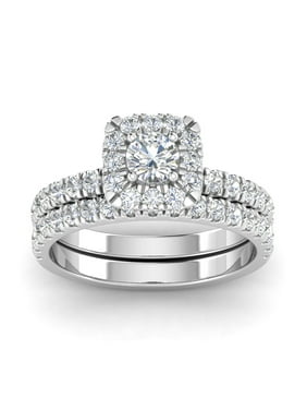 Diamond square frame vintage style bridal set in 10k white gold. Shop our amazing selection of bridal sets today. Find the wedding rings that will perfectly symbolize your lives together.