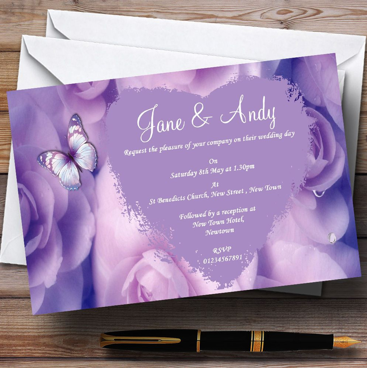 Lilac Lavender Butterfly Personalised Wedding Invitations