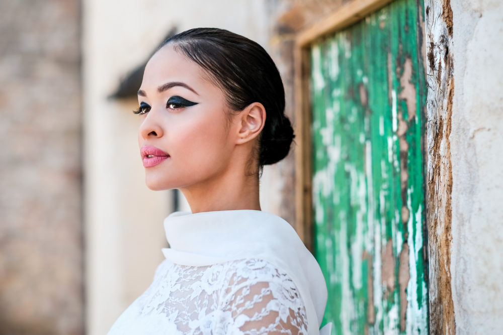 Bride With Winged Eye Liner Bold Red Lip Editorial