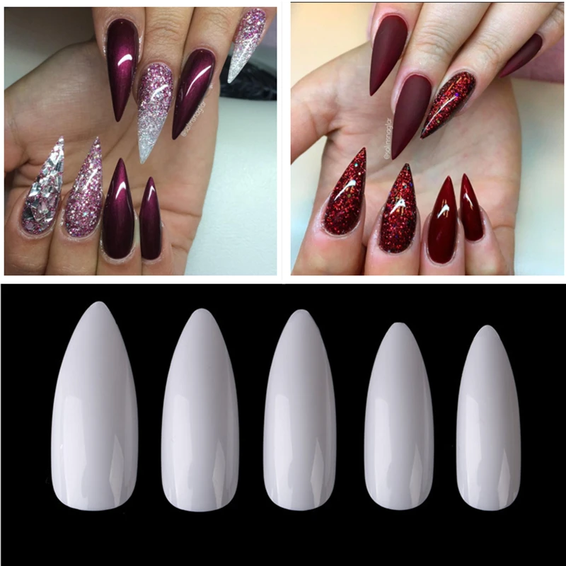 Us 4 71 31 Off Lamemoria 500pcs Opp False Stiletto Nails Acrylic Nail Art Tips Natural Fake Sharp End Long Diy Nails Salon Women Drop Shipping In