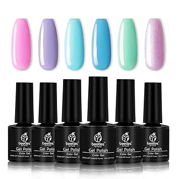 Beetles Soft Pastels Glitter Gel Nail Polish Set 6pcs Colors Pearl Purple Blue Gel Polish Pink Nail Gel Shimmer Summer Soak Off Gel Polish Kit Uv