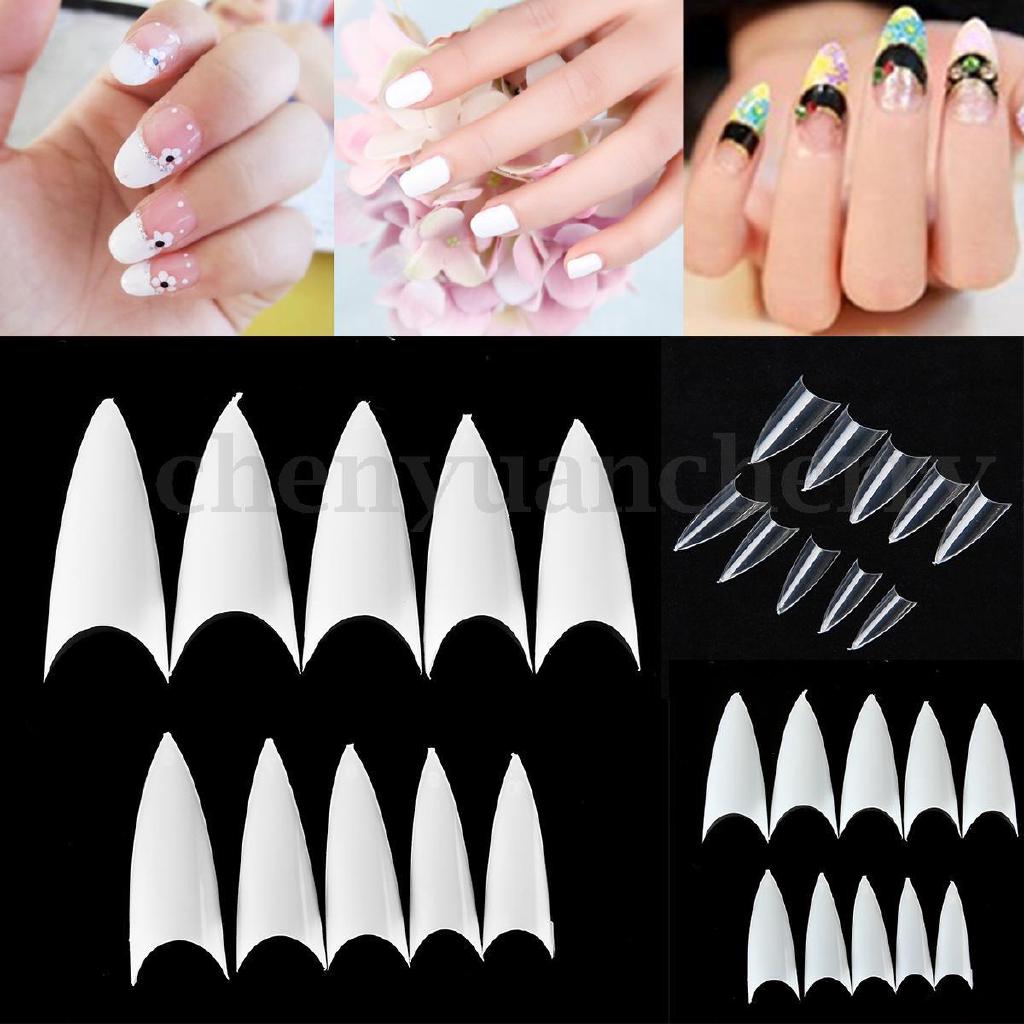 500 Acrylic Nail Tips Natural Clear False Nails Full Cover