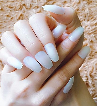 Amazon Com Coffin False Nails White Jade Like Ballerina