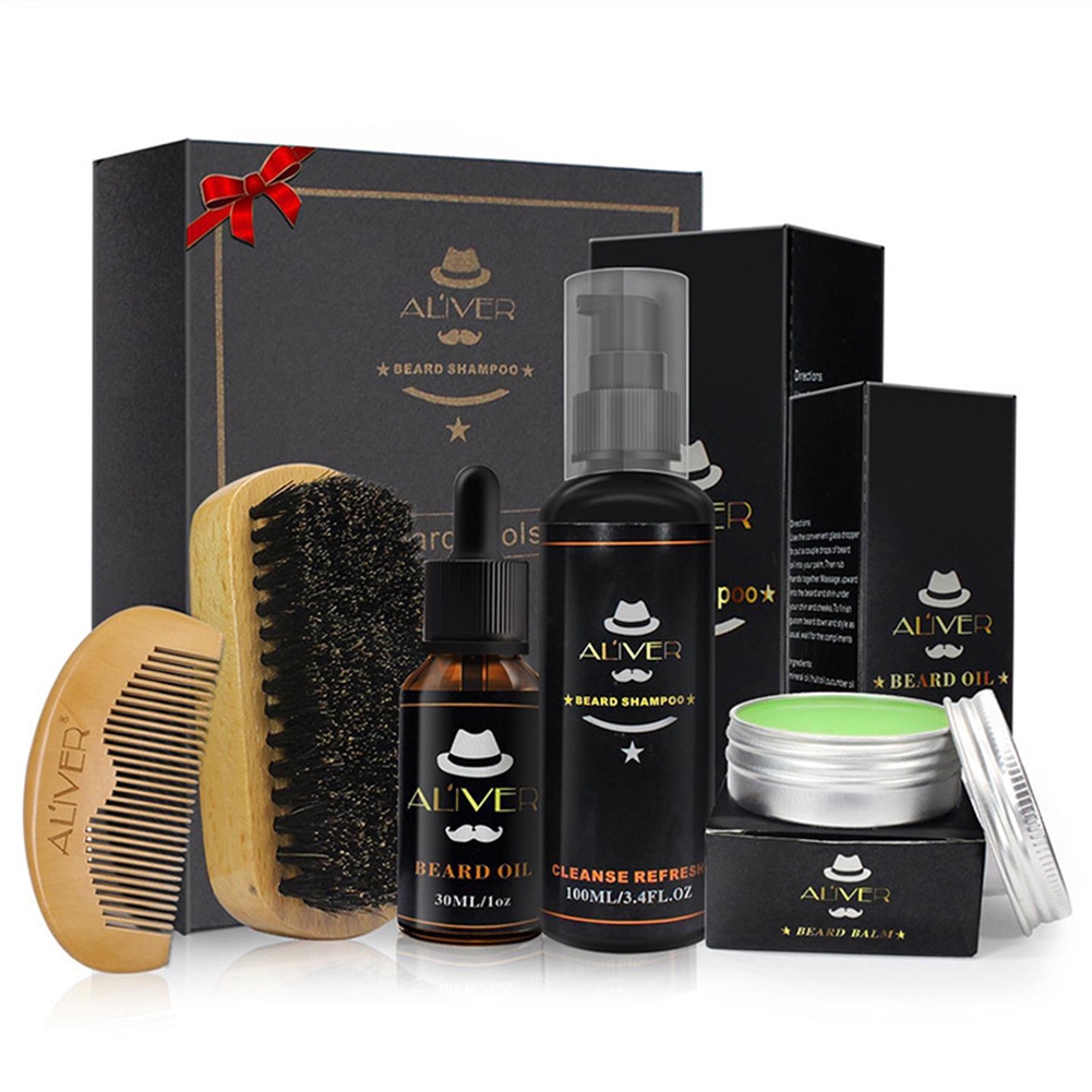 5pcs Male Beard Care Kit Beards Balm Oil Brush Comb Shampoo Set Daily Suite