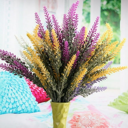 Artificial Fake Flocked Lavender Bouquet In Purple Flowers Arrangements Bridal Home Diy Floor Garden Office Wedding Decor Yellow Color