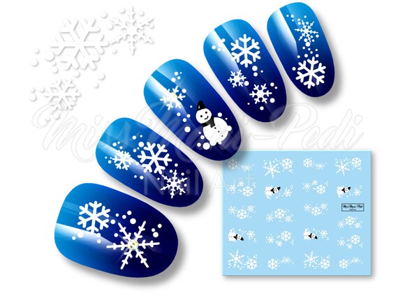 Snowflake Nails Water Nail Decals Snowman Nail Stickers Snowmen Nail Art Christmas Nails Winter Snowflakes Frozen Snow Water Decals K010
