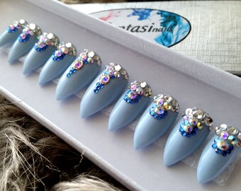 Baby Blue Bling Almond Nails By Margaritasnailz Almond