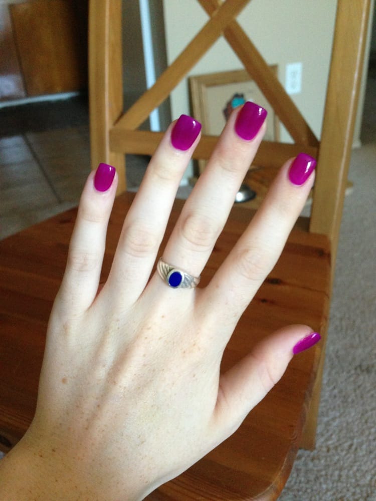 Acrylic Set With Regular Polish With Rounded Square Nails