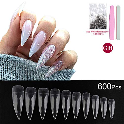 600pcs Press On Nails Stiletto For Women Clear Half Cover Long Import It All