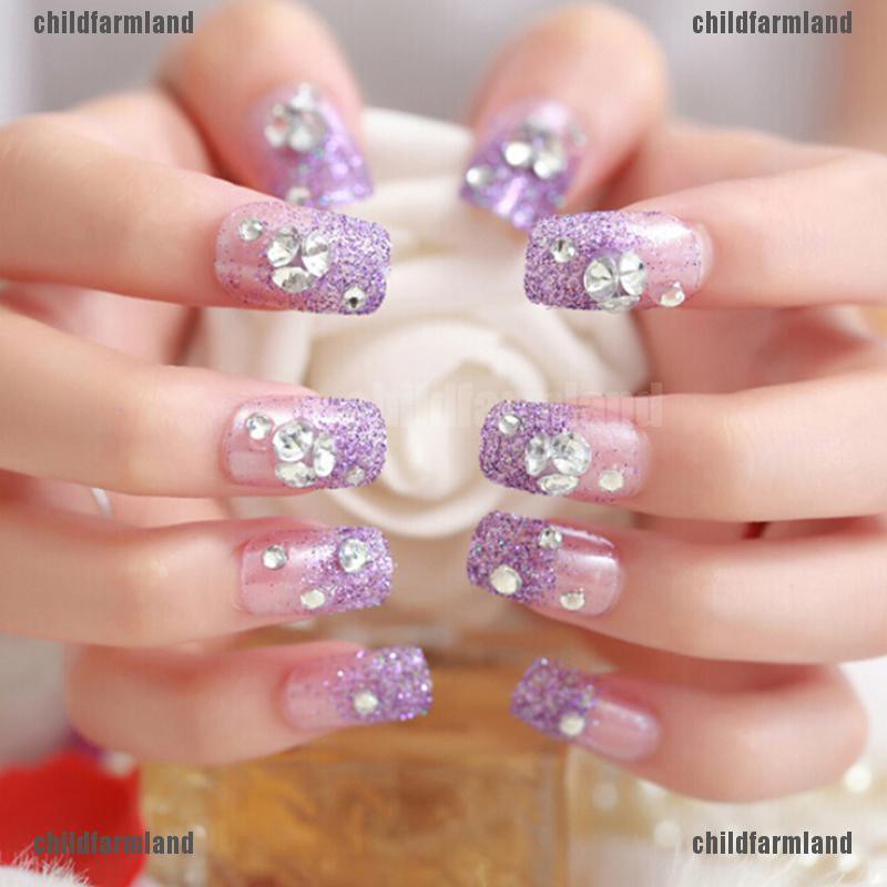 Child 24 Xred Purple Fake Nails Art Tips Acrylic Nail False Full Cover Manicure Cfl