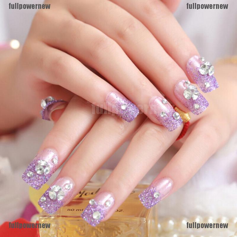 24 Xred Purple Fake Nails Art Tips Acrylic Nail Full Cover